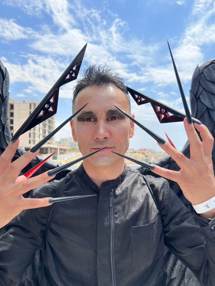 Костюм для модели семья купила, крылья везли из Бишкека, с укладкой помог Бексултан. Образ получился впечатляющим, а 26-27-сантиметровые ногти чёрного ангела оказались самыми длинными на чемпионате.