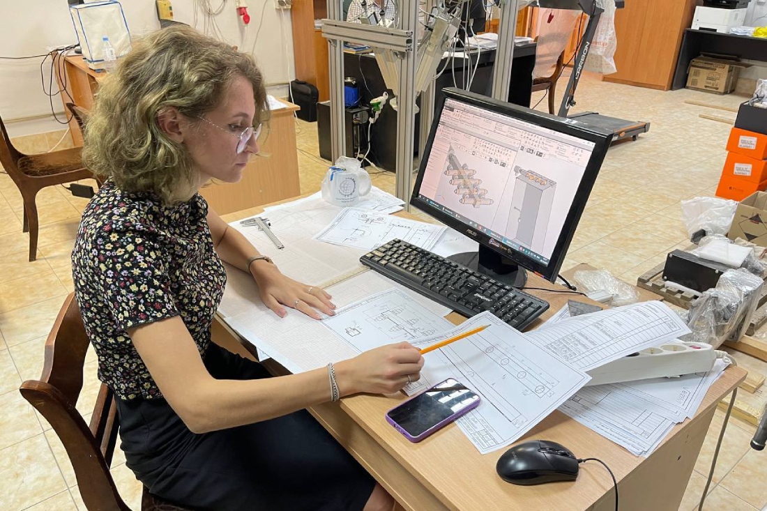 В проекте девушка выполняет различные инженерно-конструкторские задачи. По её словам, самым интересным было проектирование кондуктора для позиционирования испытуемого образца в держателе. Ведь существует ряд требований по точности размещения объектов в испытании, которые необходимо соблюсти.
