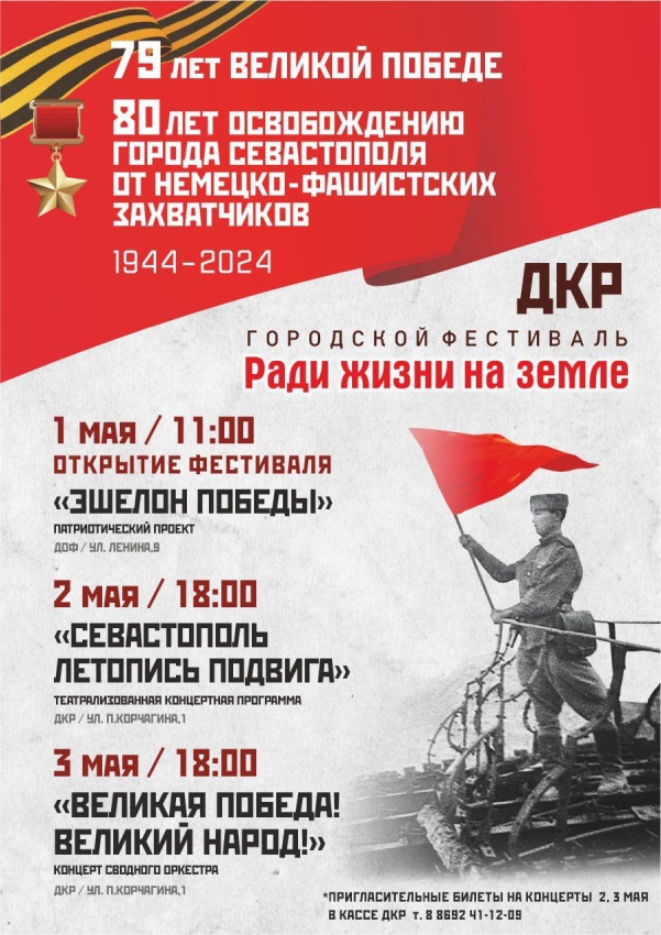 - Закрытие городского фестиваля «Ради жизни на земле». Концерт «Великая Победа! – Великий Народ!» русского народного оркестра «Жемчужина России» и народного русского оркестра «Садко».