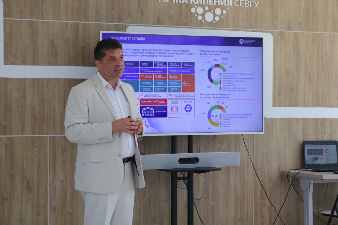 Он рассказал абитуриентам о возможностях университета: дополнительных преимуществах при поступлении и денежных поощрениях для отличившихся первокурсников СевГУ.