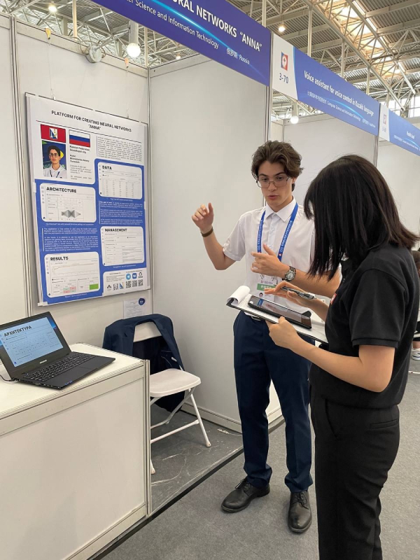 На соревновании в Китае Алексей Близниченко защищал свой научный проект «Приложение для создания и использования нейронных сетей ELENNA» перед международным жюри на английском языке. Его научный руководитель — Екатерина Глеч.