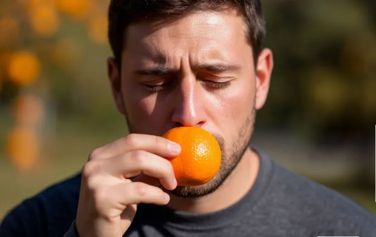Для нас — традиционный новогодний аромат. Для химиков — сочетание метил-(N-метил) антранилата — в мякоти; лимонены, гамма-терпинена, линалоола — в кожуре. При очистке фрукта разрываются микроскопические масляные мешочки, выбрасывая лимонен. Получается естественный «ароматический спрей». Вдыхание запаха мандарина стимулирует пищеварение, снижает уровень стресса.