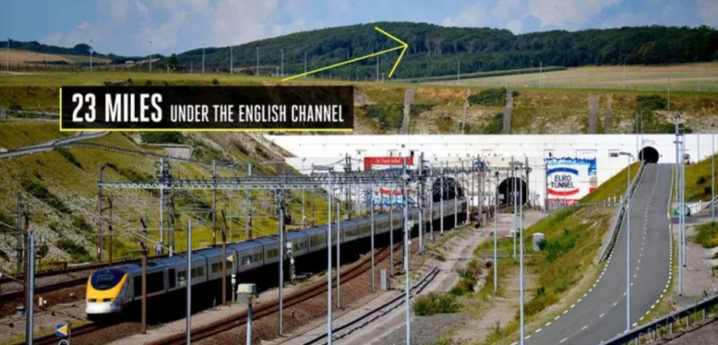 Также известный как тоннель под Ла-Маншем, этот двухпутный жд-тоннель соединяет континетальную Европу с Великобританией. Его протяженность составляет примерно 51 км, из которых 39 проходят прямо под проливом Ла-Манш.