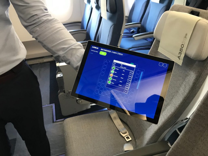Airbus начал полномасштабные летные испытания “умного салона” Connected Experience на самолете-лаборатории А350-900 и стал первым в мире производителем авиационной техники, тестирующим перспективные цифровые технологии для пассажирского салона в условиях реального полета.