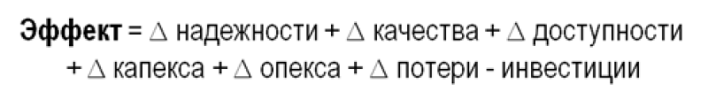 Надежность, качество, доступность как ограничения, т.е. достижение каких-то значений, а не максимизация. Целевая функция оптимизации — это себестоимость. Хотя в предельном случае я предлагаю максимизировать эффект, который включает в себя все шесть составляющих.