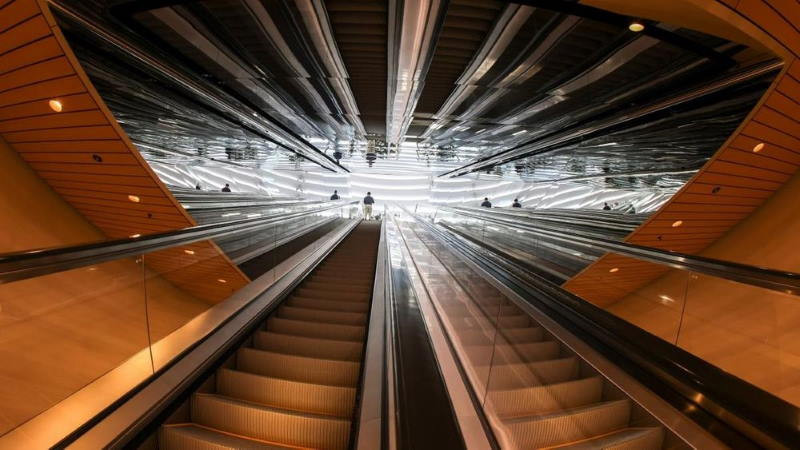 Попасть в торговый зал на втором этаже можно с «берега», пройдя несколько метров по деревянному мостику. Для посещения подводного этажа требуется зайти в расположенный рядом торговый центр и спуститься вниз по 45-метровому эскалатору.