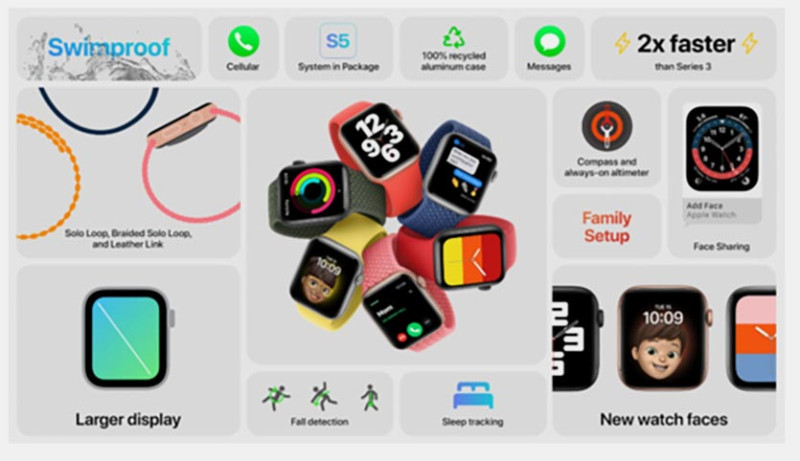 Второй представленной новинкой стали бюджетные часы Apple Watch SE. Apple Watch SE предлагаются в двух версиях — размером 40 и 44 мм. Расценки на Apple Watch SE начинаются от 279 долларов за 40-мм алюминиевую версию GPS (без поддержки сотовой связи).