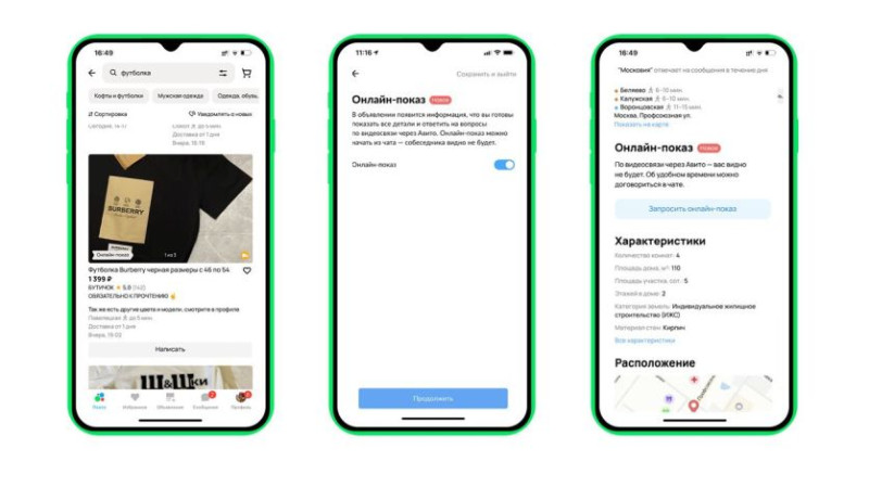 Продавцы могут включать онлайн-показы для каждого объявления, что делает его более привлекательным для потенциальных покупателей. Кнопка «Запросить онлайн-показ» теперь доступна в объявлениях, помеченных специальным бейджем в ленте поиска.