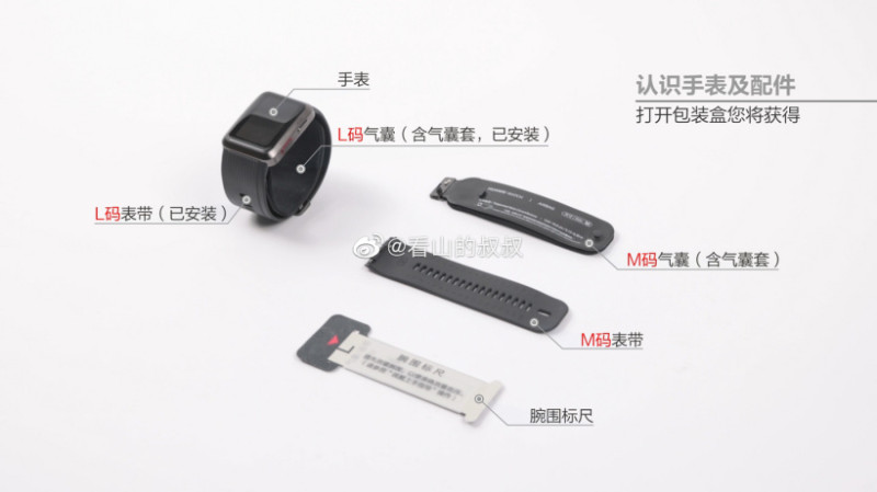 Часы комплектуются лентой для измерения обхвата запястья и двумя ремешками со встроенной манжеткой — примерно как в обычном тонометре, только гораздо более компактной. В зависимости от обхвата запястья пользователю предписано использовать ремешок-манжетку размера L или M.