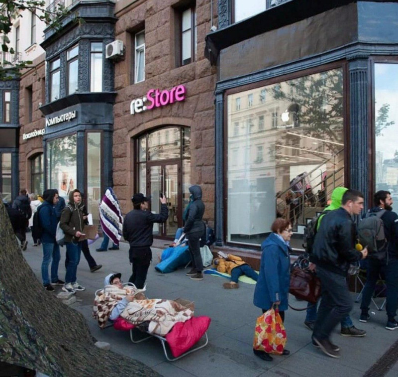 Продажи новинок стартуют одновременно в нескольких салонах, однако очередь традиционно выстраивается к одному магазину в центре Москвы.