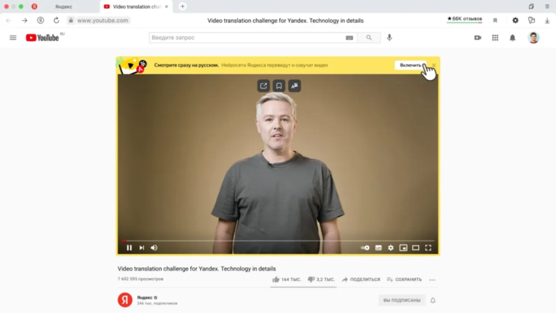 Прототип работает только с роликами на английском языке. Как отмечают разработчики технологии, уже её опробовали на видеозаписях на разные темы. Среди них есть видео про изменение климата, машинное обучение, историю Плутона и другие не менее интересные вещи. Посмотреть видео с закадровым переводом пользователи десктопного Яндекс.Браузера могут здесь.