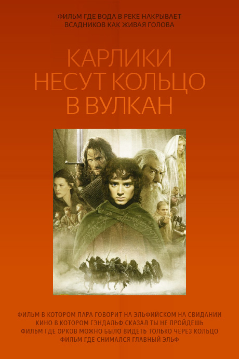 Довольно часто по ключевым словам сразу понятно, о какой картине идёт речь. Например, «карлики», «кольцо», «вулкан» и «эльфийский» не оставляют поисковику сомнений в том, что ищут «Властелина колец».