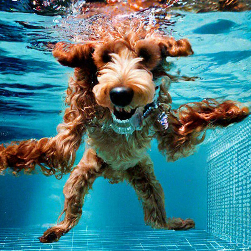 Пудель ныряет в бассейн, как на обложке альбома Nevermind