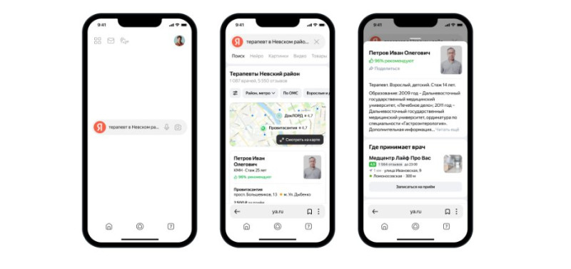 И, наконец, Яндекс объединил информацию по более чем 740 тысячам врачей России, чтобы пользователи «Поиска» могли быстро выбрать нужного им специалиста. Сведения о докторах появляются прямо в результатах «Поиска» в виде карточек, когда пользователь ищет врача определённой специализации.