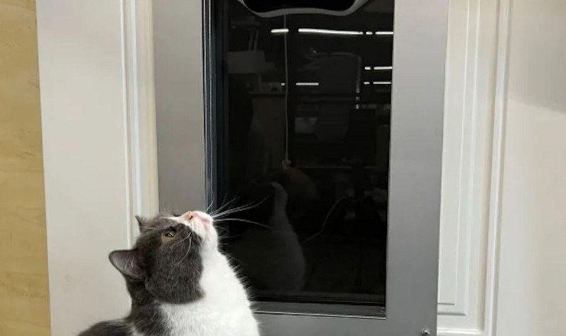 Когда ваш питомец приближается, специальный алгоритм идентифицирует его и открывает маленькую моторизованную дверцу: он проверяет датчиками его внешность, впускает, и только тогда дверца снова закрывается.
