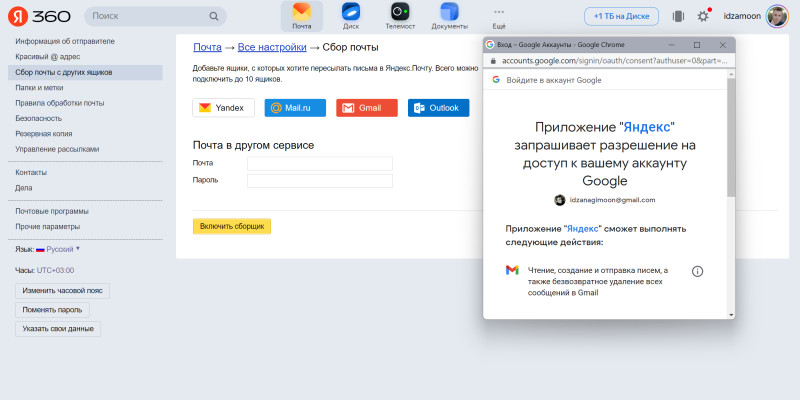 После «Яндекс.Почта» начнёт постепенный перенос ваших писем из Gmail, от новых к старым. На это может уйти несколько дней, в зависимости от количества.