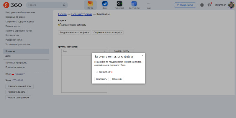 Перенесите контакты в «Яндекс»