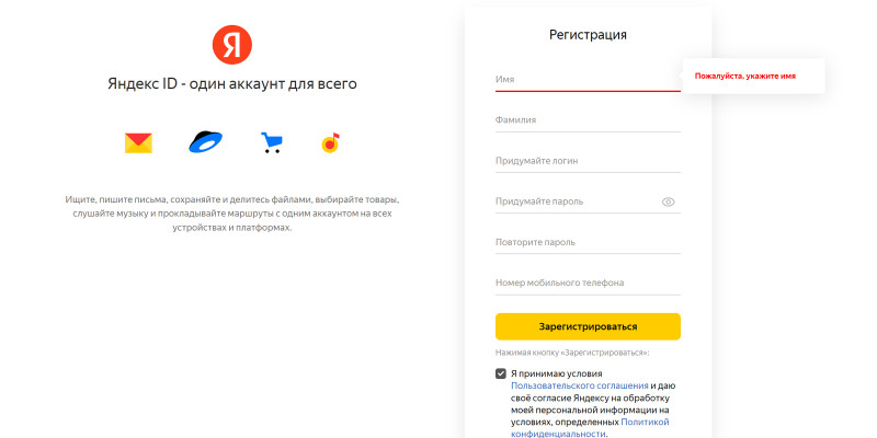 Зарегистрируйтесь в «Яндексе»