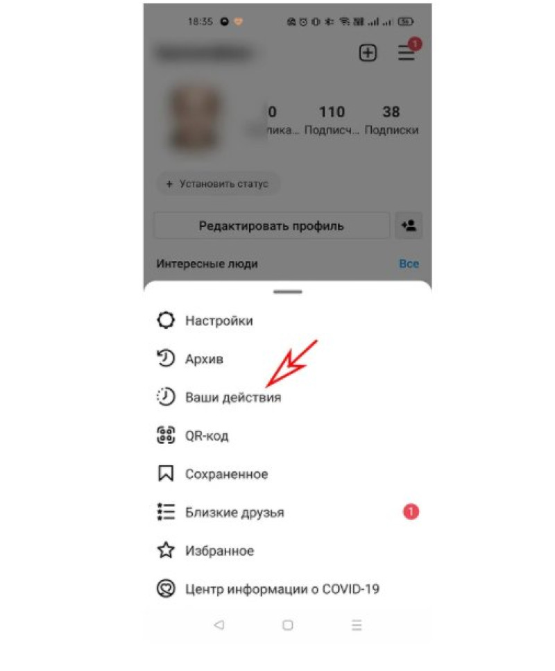 Затем нажмите кнопку в верхней правой части экрана (три горизонтальные линии) и ищем пункт «Ваши действия» (на Android) или «Ваша активность» (на iPhone).