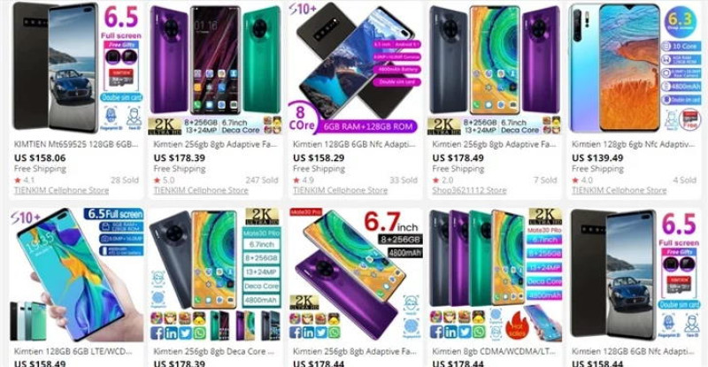 Сайт ITHome обнаружил на AliExpress магазин Kimtien, который раньше торговал поддельными смартфонами на собственном сайте, а теперь решил расширить аудиторию. В его ассортименте можно найти поддельные копии смартфонов Samsung и Huawei, правда, везде в качестве производителя указана фирма Kimtien.