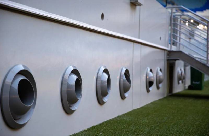 Вентиляционные отверстия находятся по периметру стадиона и под сиденьями болельщиков, что позволяет поддерживать температуру воздуха в районе +17-23 °C.