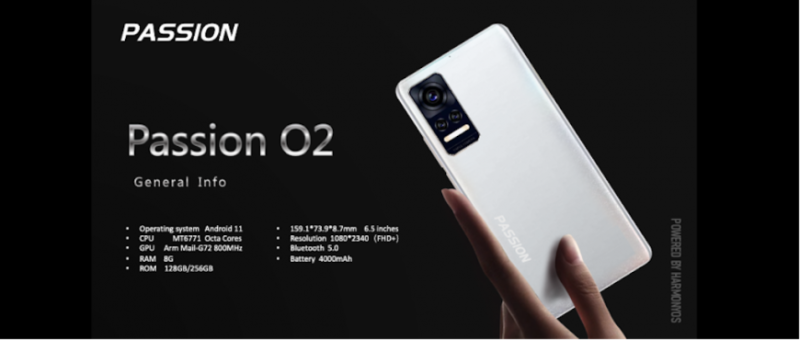 У второй модели Passion O2 экран 6,5 дюйма имеет разрешение FHD+ (2340х1080 пикселей), емкость батареи снижена до 4000 мАч и известны датчики тройной основной камеры — установлен набор 64 Мп + 8 Мп + 2 Мп. За селфи и видеозвонки отвечает 25-мегапиксельная фронтальная камера.