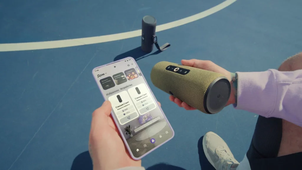 Отдельного внимания стоит режим «Играй везде». Он пригодится тем, кто хочет слушать с друзьями один и тот же плейлист в разных концах большого пространства — к примеру, спортивной площадки. Нужно подключить две «Станции Стрит» к одному аккаунту с единой точкой доступа Wi-Fi и сказать «Алиса, играй везде».