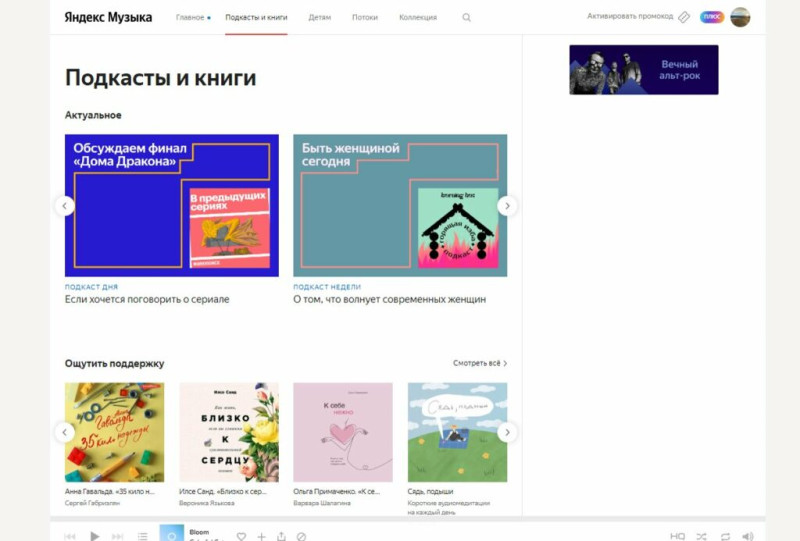 Здесь опубликована информация для подкастеров — как разместить/обновить подкаст, где и как посмотреть статистику прослушиваний, как продвигать подкаст. Выпуски можно объединять в плейлисты, которые при сохранении будут доступны для прослушивания офлайн.