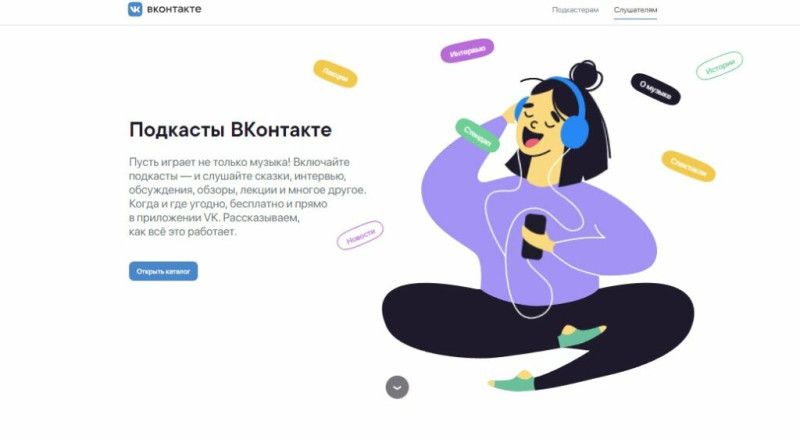 «ВКонтакте» — в соцсети есть раздел, посвященный подкастам. В мобильной версии он оформлен как раздел «Подкасты» в боковом меню. В версии для ПК подкасты будут расположены в отдельной вкладке в разделе «Новости» — там публикуются посты из всех сообществ подписчика, которые выпускают эпизоды.