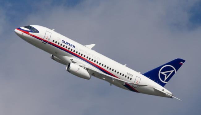 Речь идет о модели Sukhoi Superjet 100. Это ближнемагистральный узкофюзеляжный пассажирский самолёт, предназначенный для перевозки от 87 до 108 пассажиров на дальность 3050 или 4600 километров.