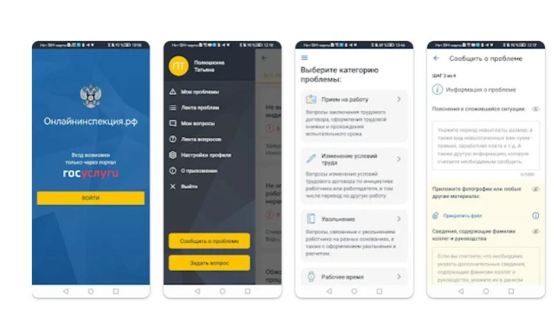 Приложение включает в себя все возможности сервиса «Сообщить о проблеме» цифровой платформы «Онлайнинспекция.рф», теперь можно подать электронное обращение в инспекцию труда как через портал, так и через приложение.