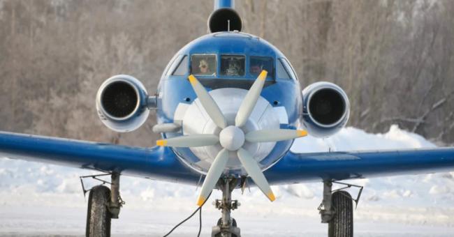 Наземные испытания машины прошли в феврале на аэродроме Ельцовка в Новосибирске. Тогда на взлетно-посадочной полосе появился самолет, внешне очень похожий на пассажирский Як-40, но с большим носом и пропеллером впереди.
