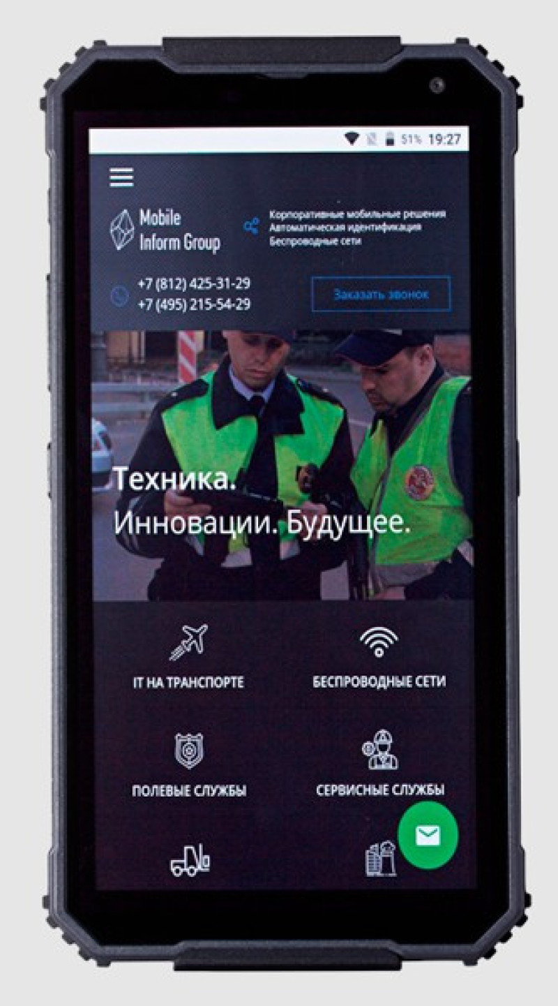 «Смартфон рассчитан на многолетнюю непрерывную эксплуатацию в самых суровых условиях — морозостойкие аккумуляторы и система управления питанием обеспечивают работу на глубоком минусе, энергоэффективные современные чипсеты увеличивают скорость и время автономной работы — до 20 часов при использовании всех каналов связи», — отметил генеральный директор Mobile Inform Group Константин Манцветов. —