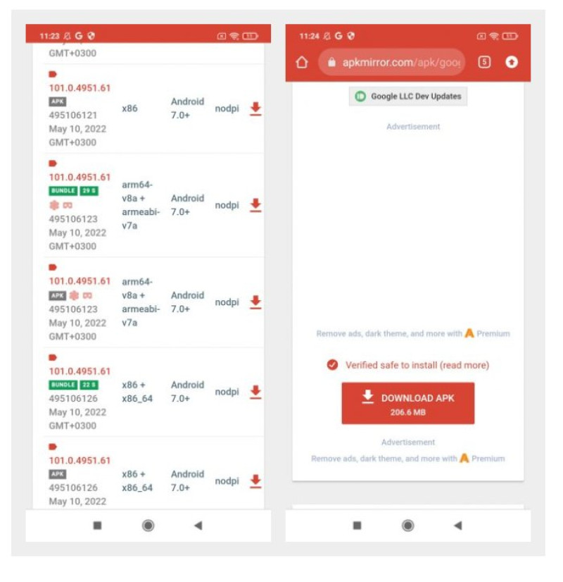 1. Загрузите с APKMirror файл новой версии Chrome — это 101.0.4951.61. Выберите самую свежую версию по этой ссылке.