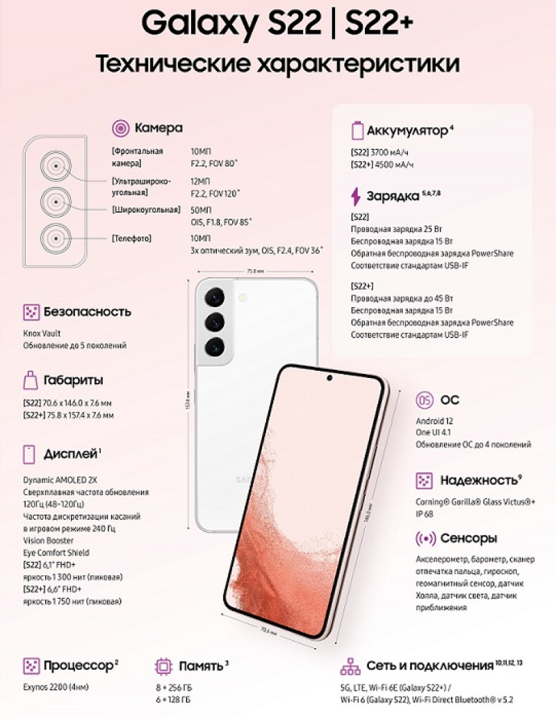 Серия, включающая флагманы Galaxy S22, S22+ и Galaxy S22 Ultra, используют «передовые камеры с интеллектуальной обработкой изображения», а модель Ultra во многом похожа на смартфоны ушедшей в прошлое флагманской серии Galaxy Note — новый смартфон тоже получит «карман» в корпусе для стилуса S Pen, поставляемого в комплекте.