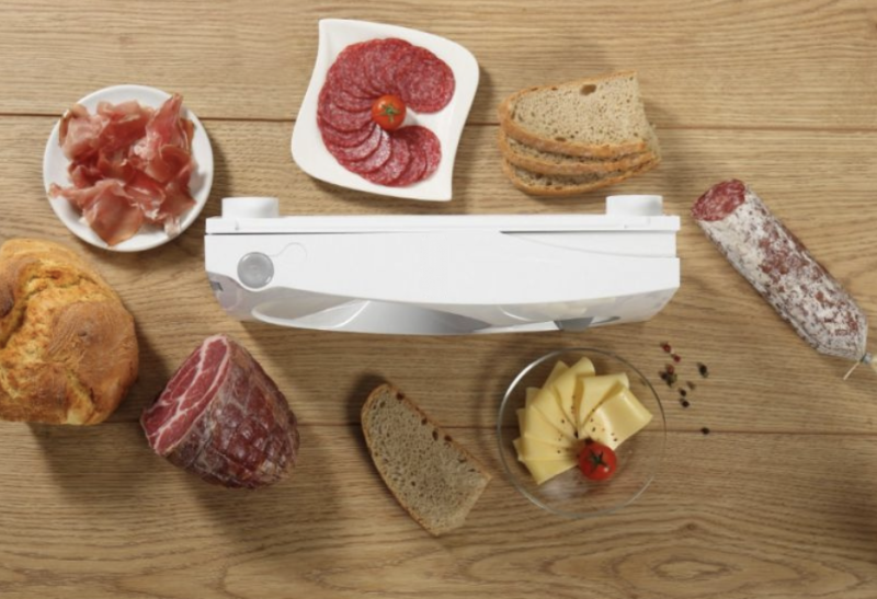 Прибор предназначен для идеальной нарезки всех видов колбас, сыров, фруктов и овощей, а на крупных устройствах можно нарезать хлеб. А теперь представьте: утром, чтобы сделать три бутерброда, нужно будет достать прибор, подключить, отрегулировать толщину кусочков, нарезать, вытащить нож, вымыть его и протереть сам прибор.