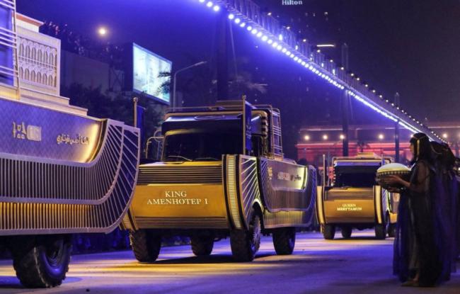 Процесс переезда древних экспонатов власти страны превратили в красочную церемонию, получившую название «Золотой парад фараонов». Для транспортировки мумий были созданы специальные грузовики, стилизованные под древнеегипетские погребальные лодки.
