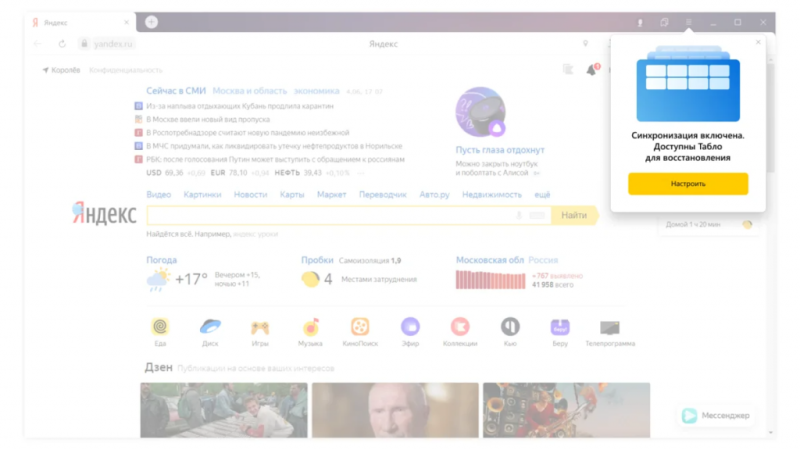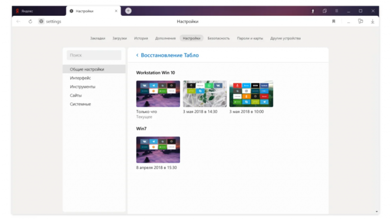 Наше поведение в интернете зависит от задач и окружения. На семейном компьютере популярны одни сайты. На личном ноутбуке — другие. На рабочем — вообще третьи. Табло во всех трёх случаях тоже будет разным. Значит, мы не можем синхронизировать его так же просто, как закладки, пароли и прочие настройки. Непонятно, какую версию надо сохранить в облаке и восстановить после переустановки. В индустрии готового решения для этой задачки раньше ни у кого не было. Но такое решение появилось — в новом Яндекс.Браузере».