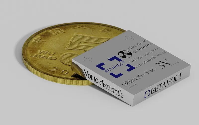 Элемент питания BV100 состоит из тончайших чередующихся пластин, которые выполнены из никеля-63; материала на основе полупроводникового алмаза и заключены в компактный корпус с контактной площадкой на одной из его внешних граней. Толщина каждого полупроводникового слоя составляет 10 мк, радиоактивной пластины-сердечника – 2 мк.