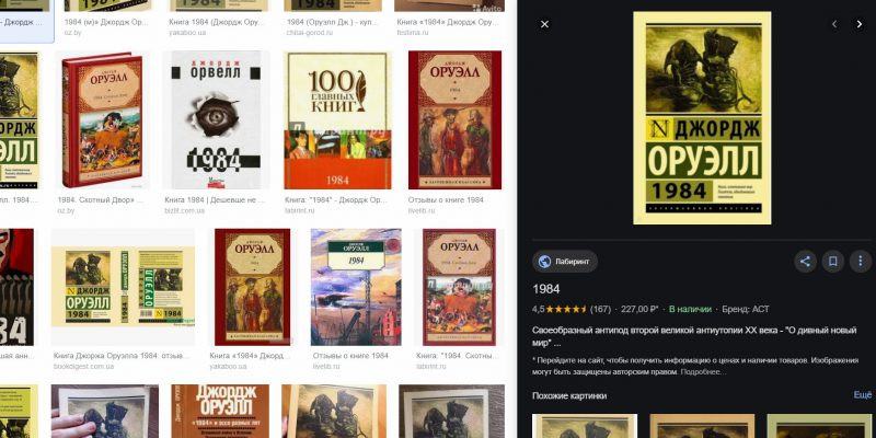 Теперь выбранная картинка постоянно отображается в правой части экрана, и вы можете спокойно листать всю выдачу. В этом же поле можно увидеть похожие варианты.