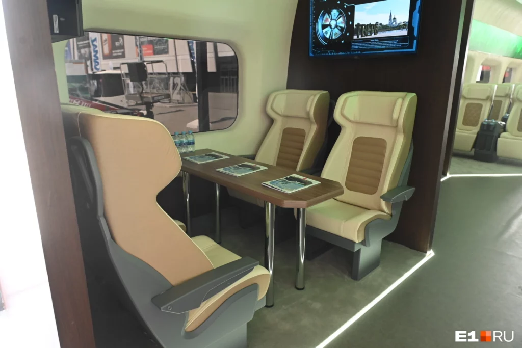 На выставке «Иннопром» анонсировали начало работы над российским сверхскоростным поездом и показали полноразмерный макет головного вагона. Производством занимается завод «Уральские Локомотивы».