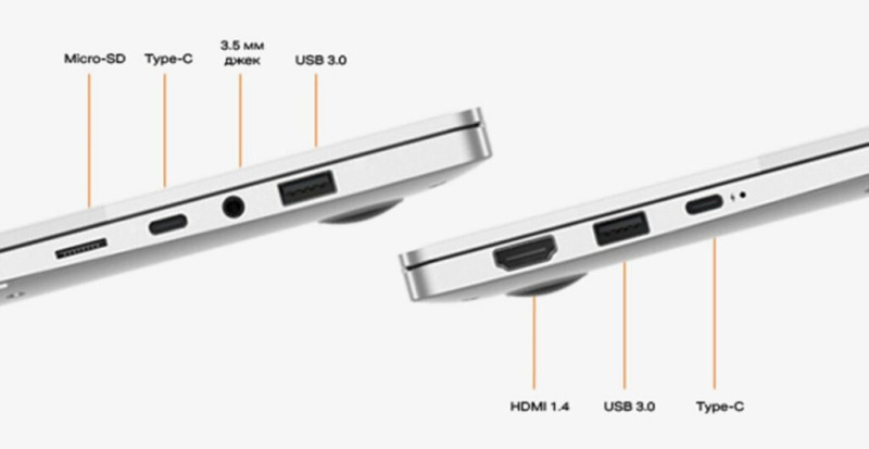 Ноутбук оснащён 15,6-дюймовым дисплеем IPS с соотношением сторон 16:9, разрешением FHD+ и яркостью 240 нит. В наличии 2 порта USB Type-C, 2 USB 3.0, слот для SD карты, полноразмерный HDMI 1.4 для подключения внешних экранов и 3,5 мм разъем для наушников.