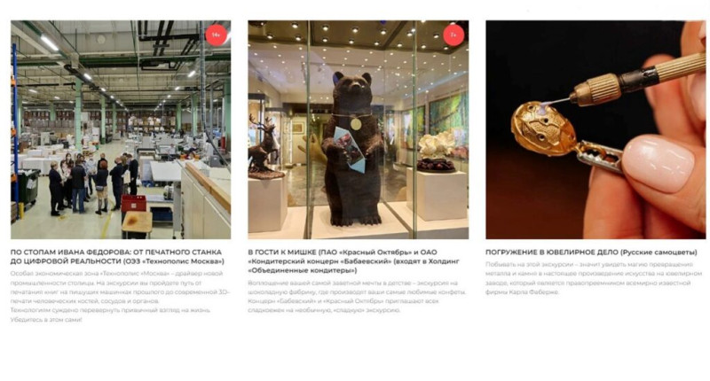 На сегодняшний день гид содержит несколько десятков экскурсионных туров на российские предприятия различных сфер деятельности — от народных художественных промыслов до пищевой и космической промышленности. Со временем путеводитель будет пополняться новыми туристическими маршрутами.