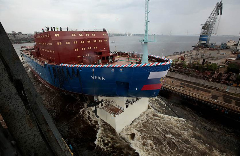 В отличие от «Арктики» «Урал» сошёл со стапеля с уже загруженными реакторными установками и практически полностью оснащенный системой электродвижения.