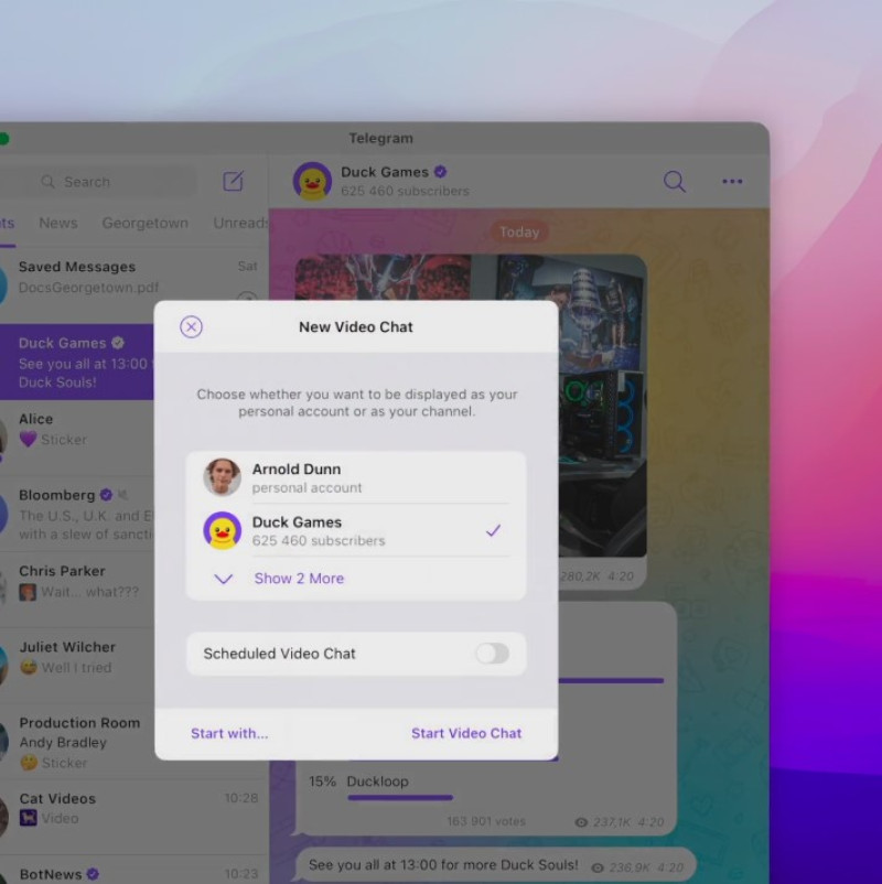 Также в приложениях Telegram можно параллельно подключить несколько учетных записей с разными номерами телефона, а приложение для macOS теперь позволяет открыть несколько учетных записей в разных окнах.