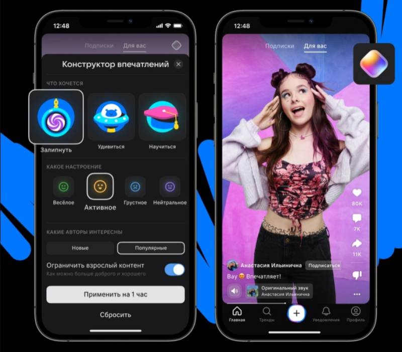 Выбранные в конструкторе параметры будут действовать в течение часа — при повторном посещении раздела «Клипы» или приложения VK Клипы зритель сможет вернуться к ленте по умолчанию.