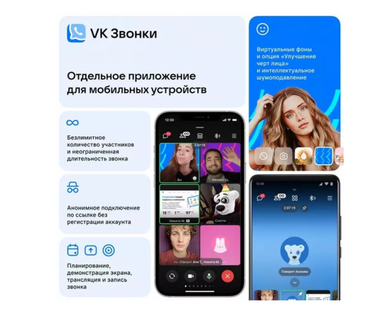 Команда «ВКонтакте» запустила отдельное приложение «VK Звонки». Как подчёркивают разработчики, приложение полностью бесплатно и в нём доступны все функции для безлимитных видеоконференций.
