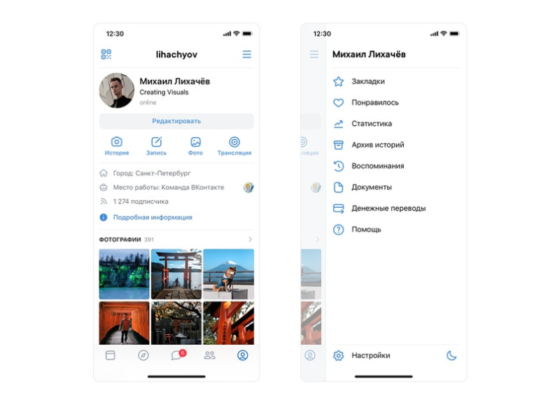 Профили других пользователей тоже выглядят по-новому: появилась возможность быстро позвонить, отправить деньги или подарок, подписаться на уведомления о новых записях и трансляциях. Блок со свежими фотографиями стал крупнее — последние снимки теперь на виду.