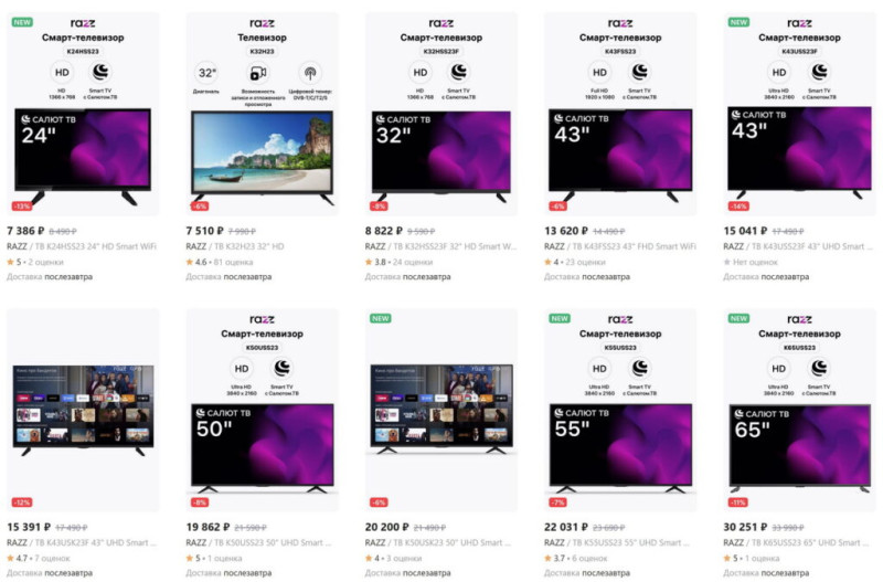 Компания Wildberries представила на российском рынке телевизоры под собственной торговой маркой RAZZ, сообщают «Ведомости».