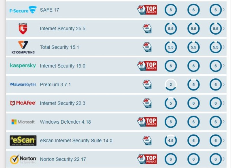 Свежий рейтинг AV-Test указывает на то, что максимальную оценку получили лишь четыре антивирусных программы: Safe 17, Kaspersky IS, Norton Security и, собственно, Windows Defender.
